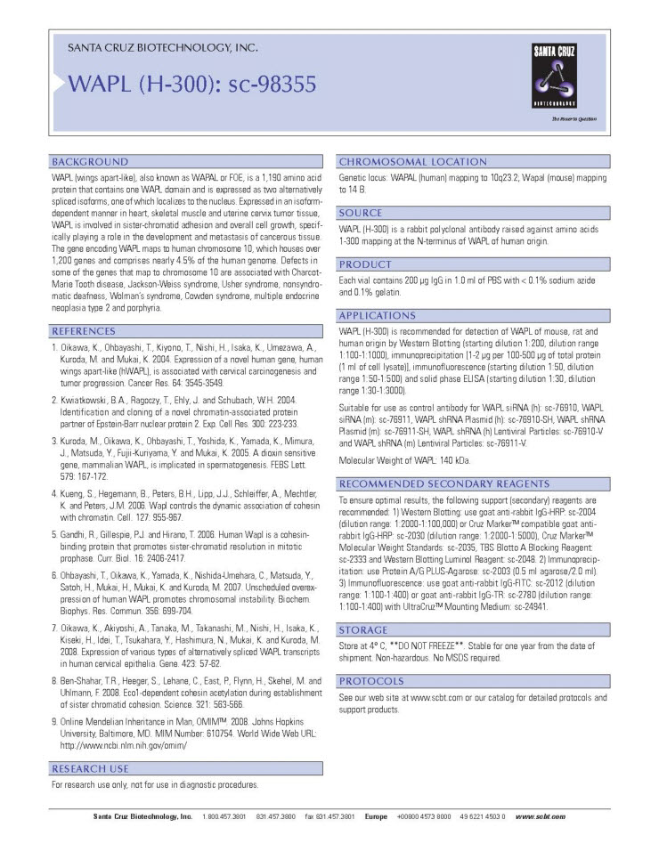 WAPL (H-300) Antibody