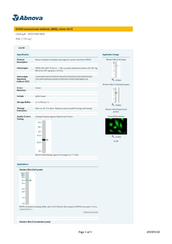 WARS monoclonal antibody (M02), clone 3A12