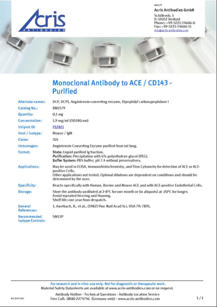 Frozen sections, Enzyme Immunoassay, Flow cytometry, Immunoprecipitation |