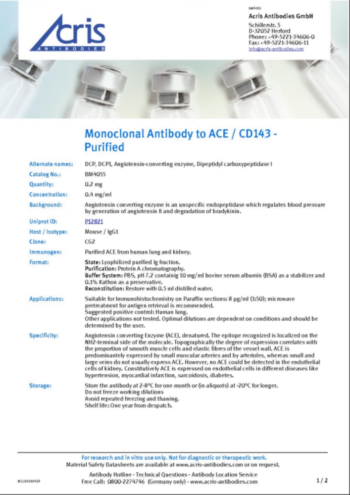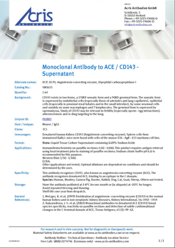 Frozen sections, Enzyme Immunoassay, Flow cytometry, Immunoprecipitation |