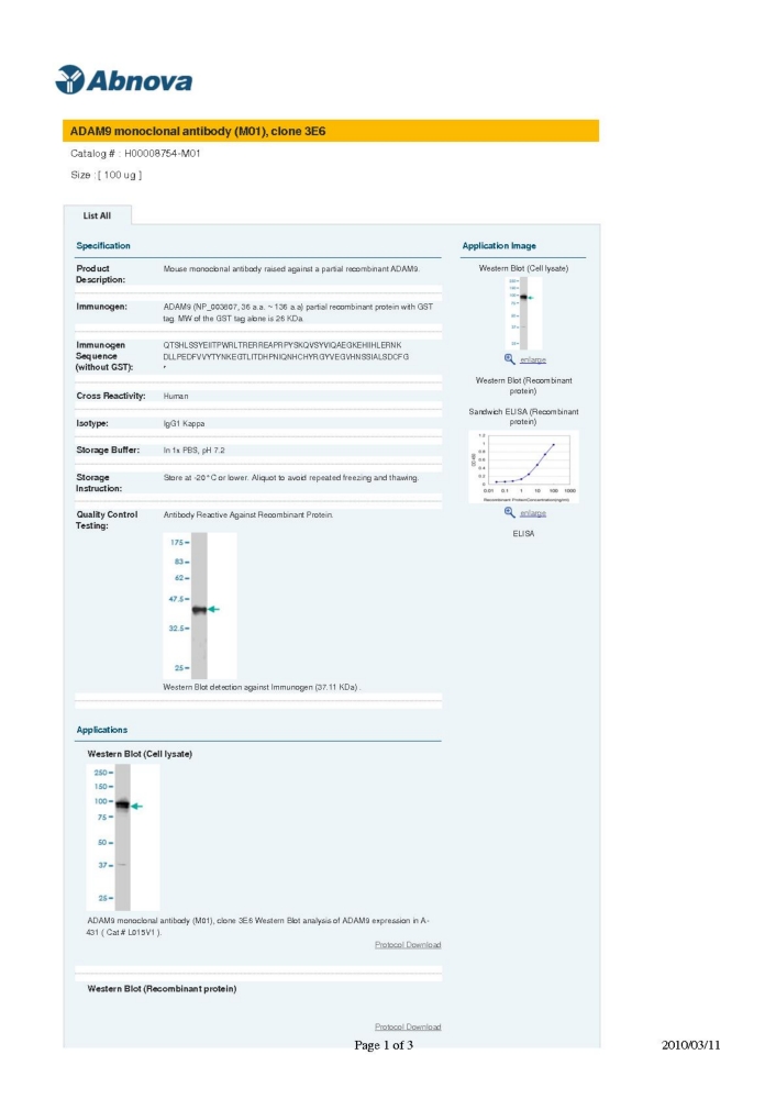 ADAM9 monoclonal antibody (M01), clone 3E6