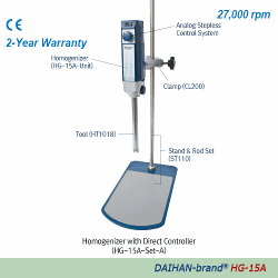 DAIHAN-brand¢ç Homogenizer with Direct Controller, ¡°HG-15A¡±, up to 27,000 rpm, 1~2,500§¢ with Analog Stepless Control System, High Efficiency Dispersing Tools, High-Speed¡¤High-Quality¡¤Low Noise ±ÕÁú±â / È£¸ð°Ô³ªÀÌÀú, ¾Æ³¯·Î±× ÄÁÆ®·Ñ·¯ ³»Àå, Ãʰí¼Ó/Àú¼ÒÀ½ ¸ðÅÍ